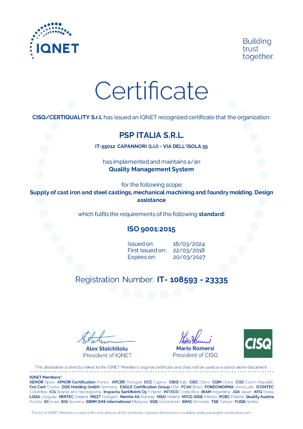 PSP Italia is your supplier of iron and steel castings. For 35+ years we have been delivering cast and machined components for demanding industries with high standards, reliable lead times and full traceability. We manage every stage, from pattern to shipment, ensuring quality and dependability.